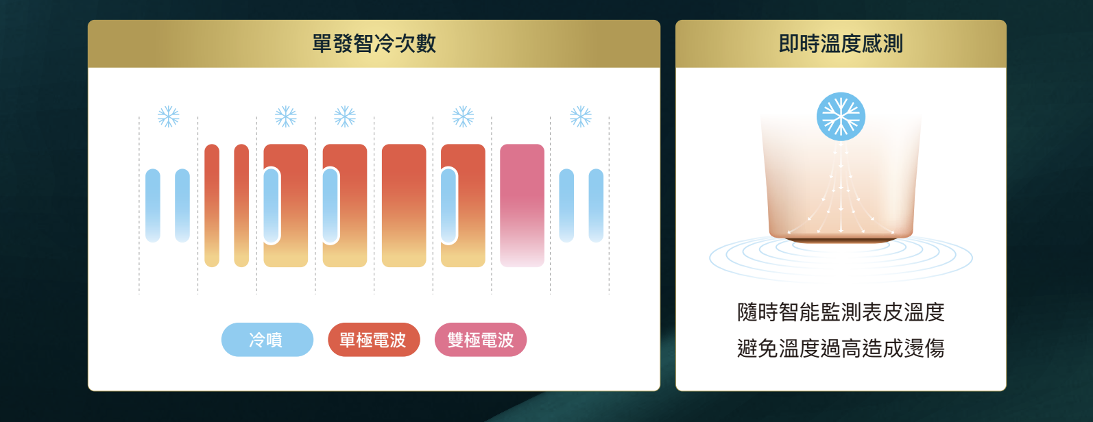 無雙電波具備即時溫度感測及五段式七次冷噴智冷技術,可依據RF能量調整最合適的冷噴強度,讓治療安全舒適,不需膚麻即可治療。