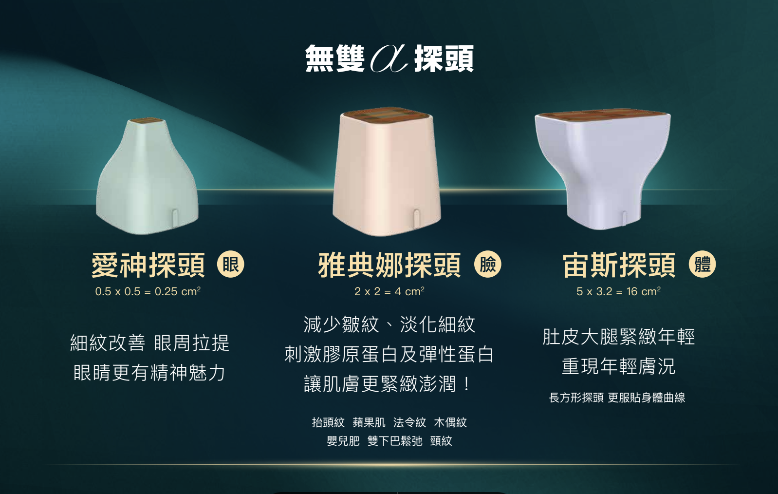 雅典娜探頭(全臉探頭):減少皺紋、淡化細紋,刺激膠原蛋白及彈性蛋白,讓肌膚更緊緻澎潤。